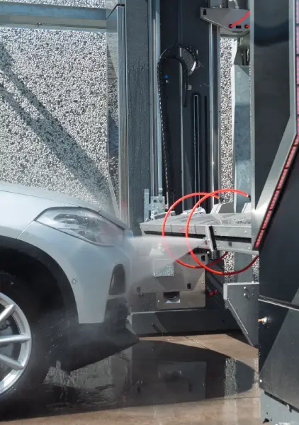 - Nici o atingere! Cu adevarat singurul portal de spălare automată făra atingere – “touchless”, la care spălarea caroseriei se va face exclusiv cu jeturi de apă sub presiune.